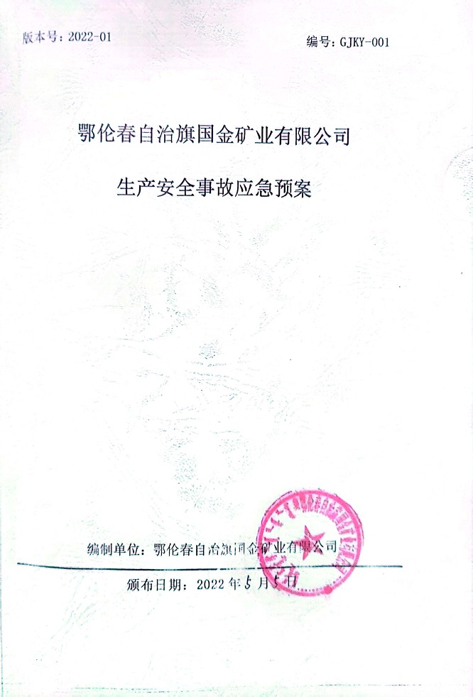 鄂倫春自治旗國金礦業(yè)有限公司生產(chǎn)安全事故應(yīng)急預(yù)案
